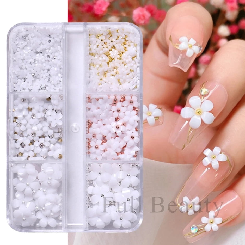 6 Grids 3d White Acrylic Flower Nail Parts Mixed Steel Beads Charms Design Nail Art Decoration Diy Jewelry Accessory Walmart Com
